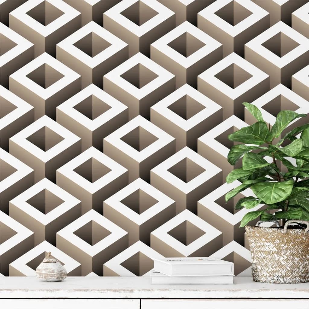 3D Geometric Cubes Illusion Design Wallpaper, Neutral Tones Peel ...