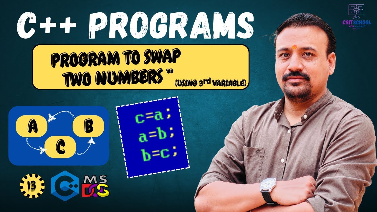 C++ Example Program to Swap Two Numbers using Third variable | Video ...