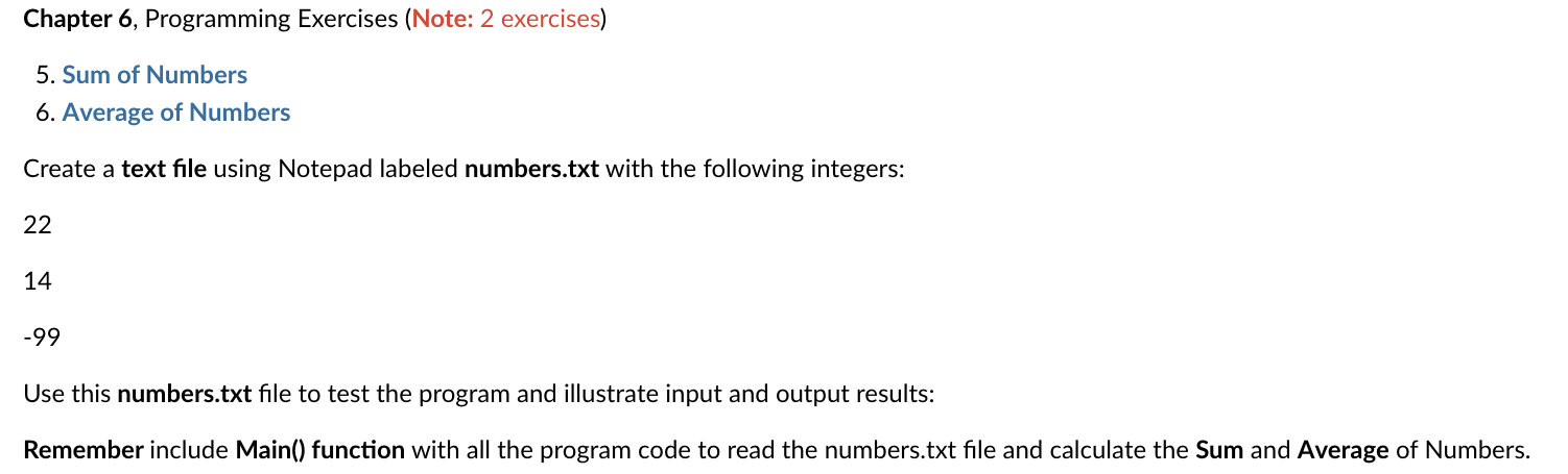 Solved Chapter 6, Programming Exercises (Note: 2 exercises) | Chegg.com