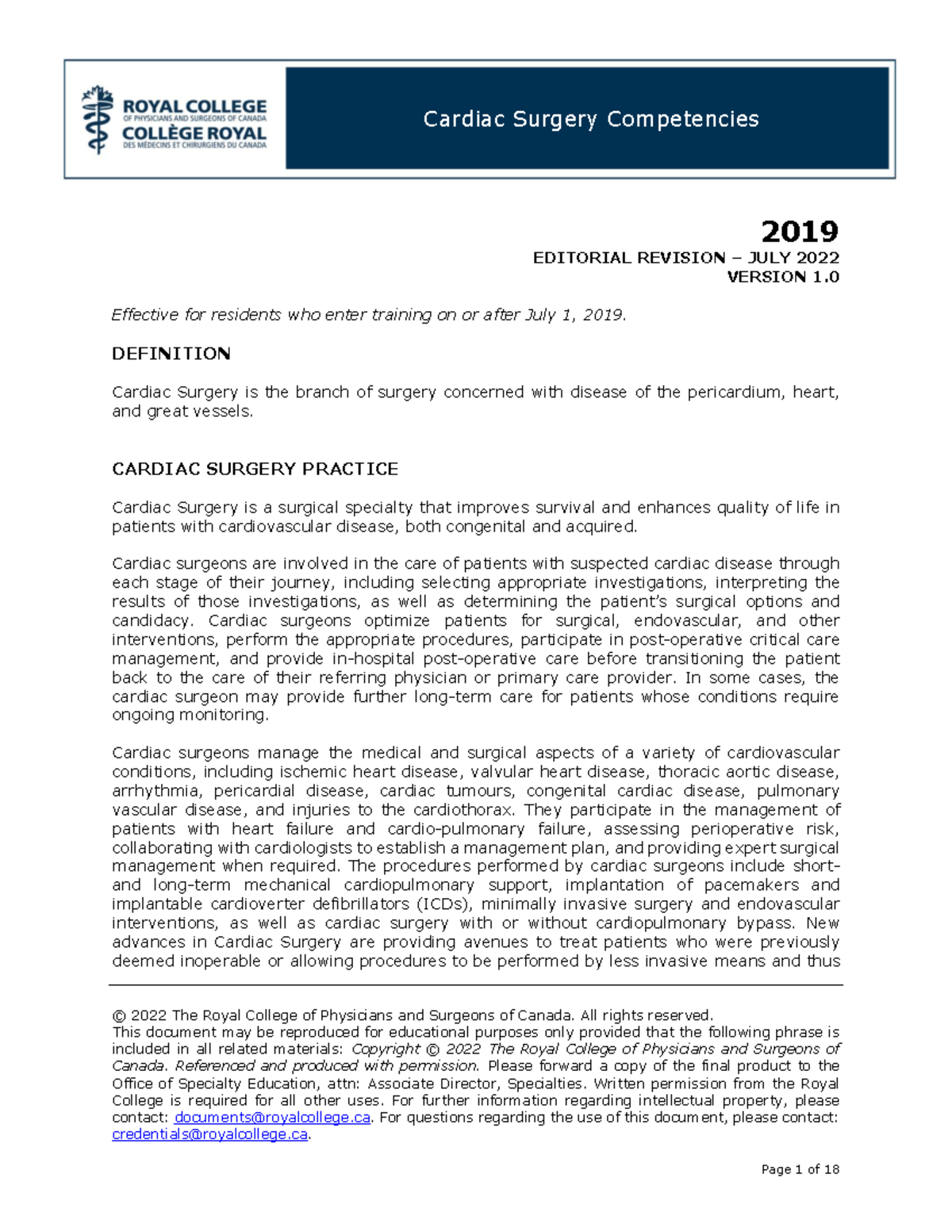 Cardiac Surgery Competencies 2019: Editorial Revision July 2022 - Studocu