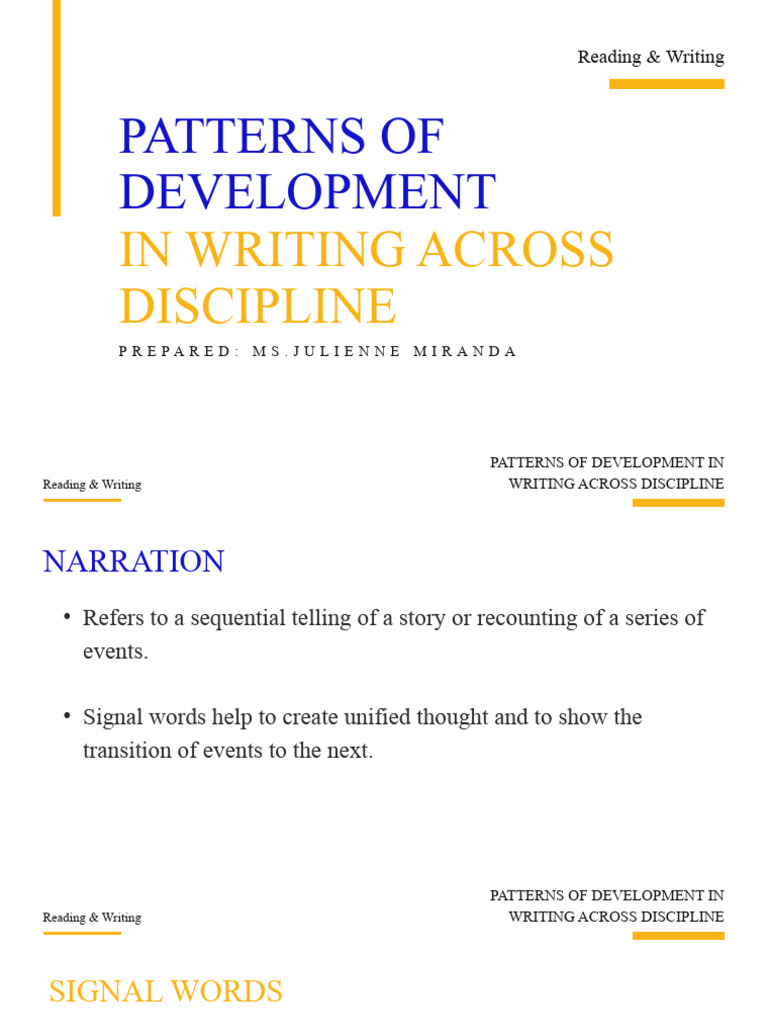 Patterns of Development in Writing Across Discipline - PART I | PDF ...