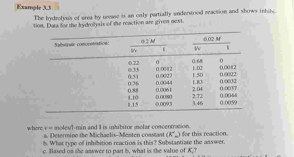 Solved Example 3.3 The hydrolysis of urea by urease is an | Chegg.com