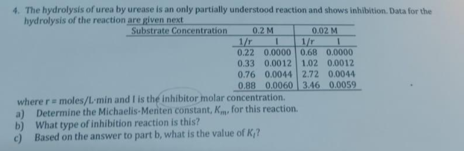 Solved 4. The hydrolysis of urea by urease is an only | Chegg.com