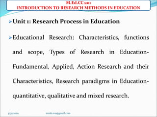 Unit 1-introduction to research methods -dr m r n babu | PDF