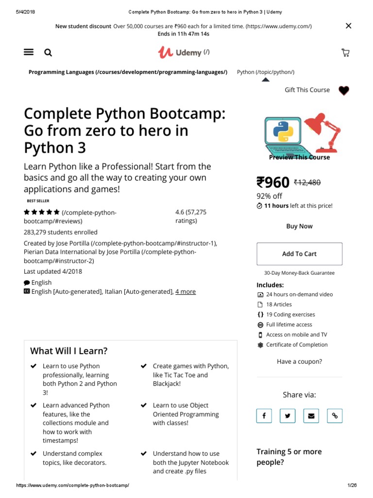 Learn Python from Zero to Hero Course in Udemy - YouTube