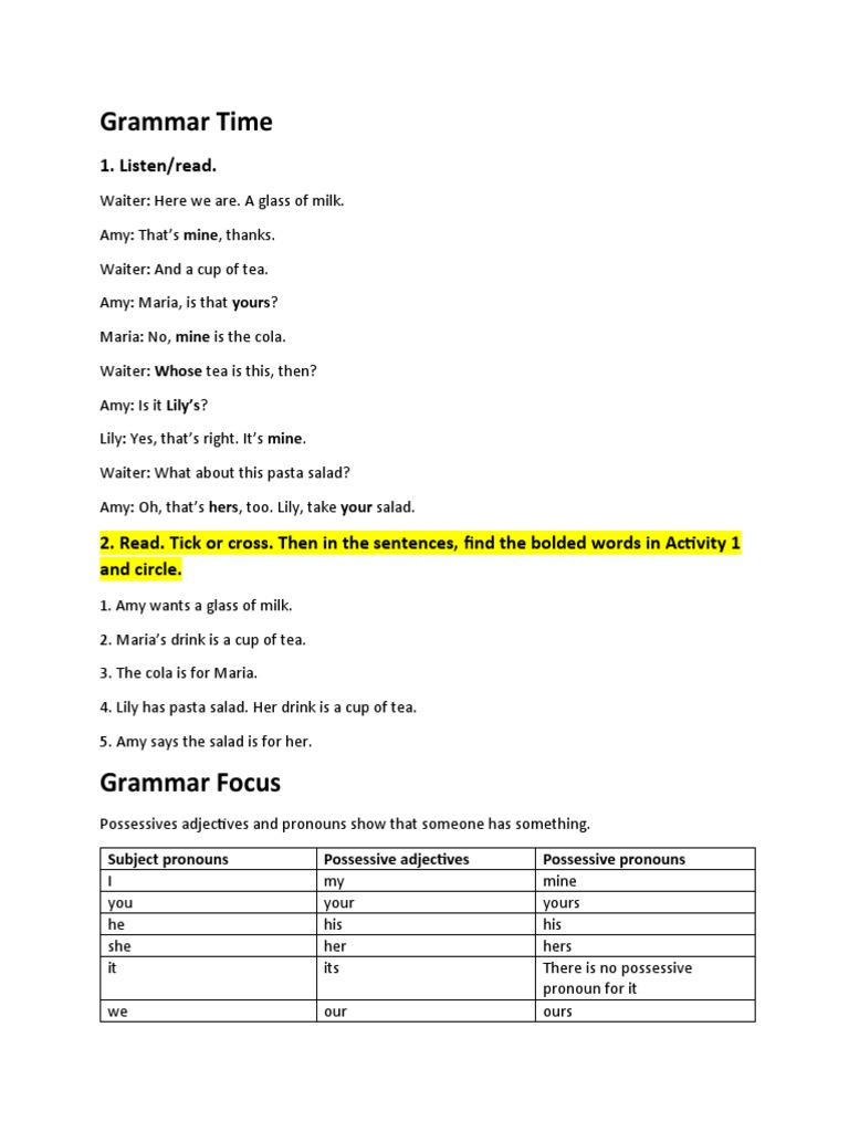 A1+ - Unit 2 - Lesson 3 (Reviewed) | PDF | Pronoun | Noun