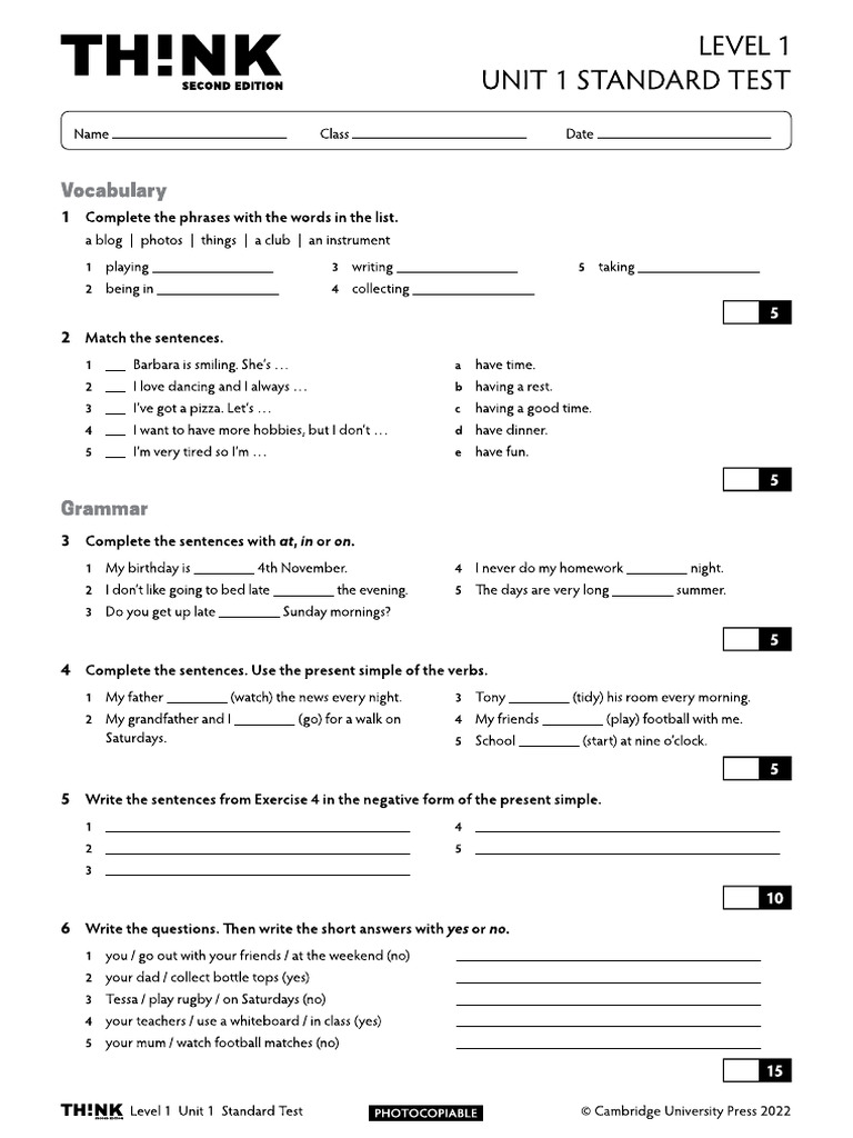 A2 Unit 1 Standard Test | PDF