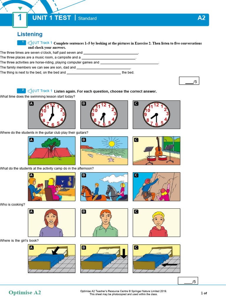 A2 Unit 1 Test: Listening, Grammar, Vocabulary & More | PDF