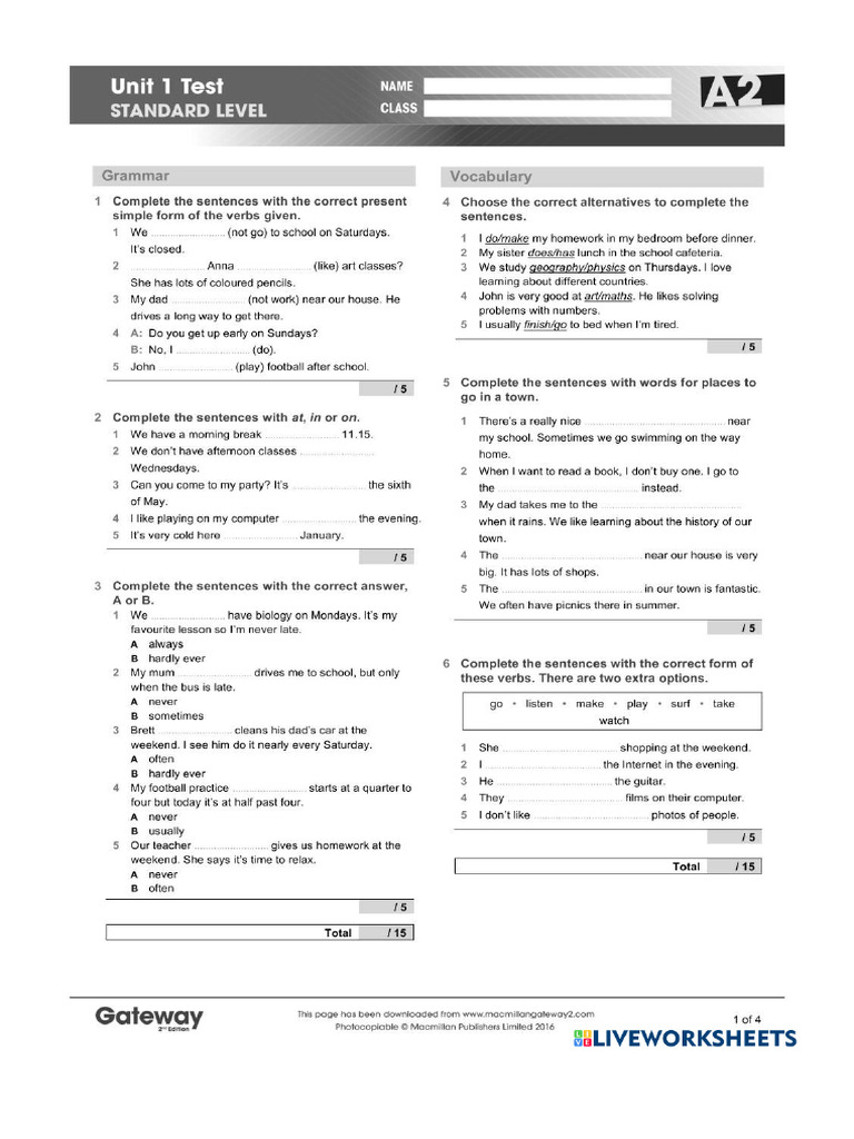 UNIT 1 TEST A2/… | Free Interactive Worksheets | 8034261