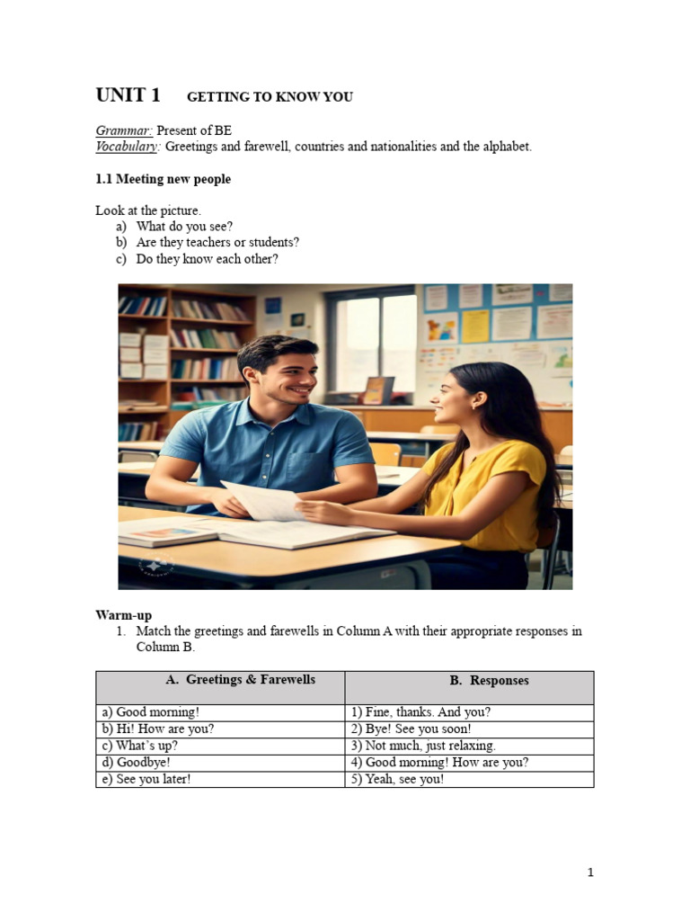 English Class A2 Unit 1: Vocabulary, Grammar, and Activities - Studocu