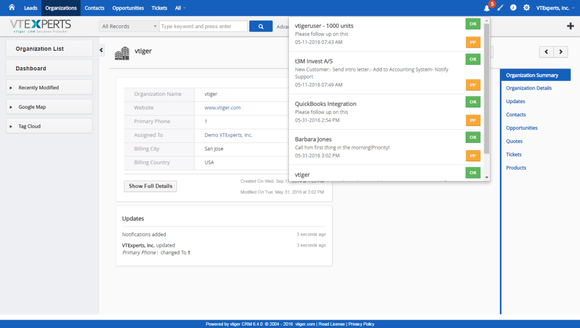 Create Notification When Record Has Been Updated In VTiger 7 - VTiger ...