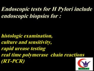 INVESTIGATIONS FOR H. PYLORI | RAPID UREASE TEST | PCR | STOOL ANTIGEN ...