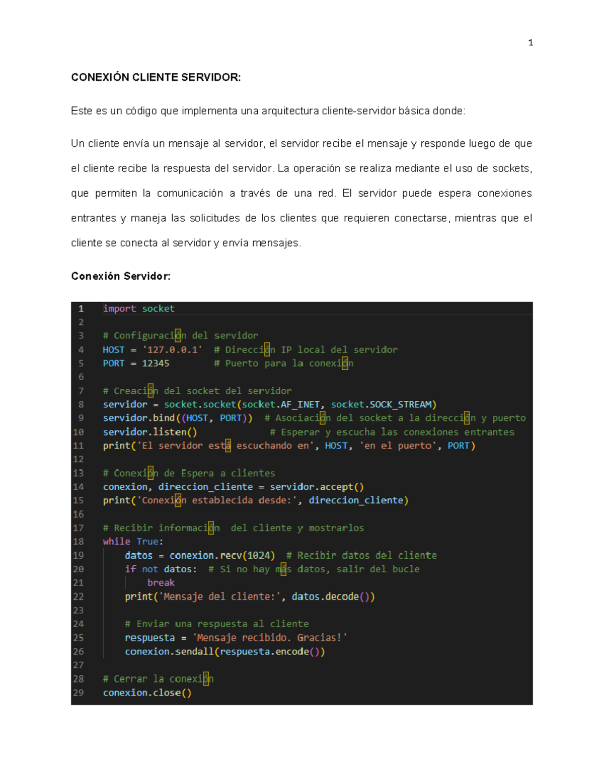 Cliente - Servidor - CONEXIÓN CLIENTE SERVIDOR: Este es un código que ...