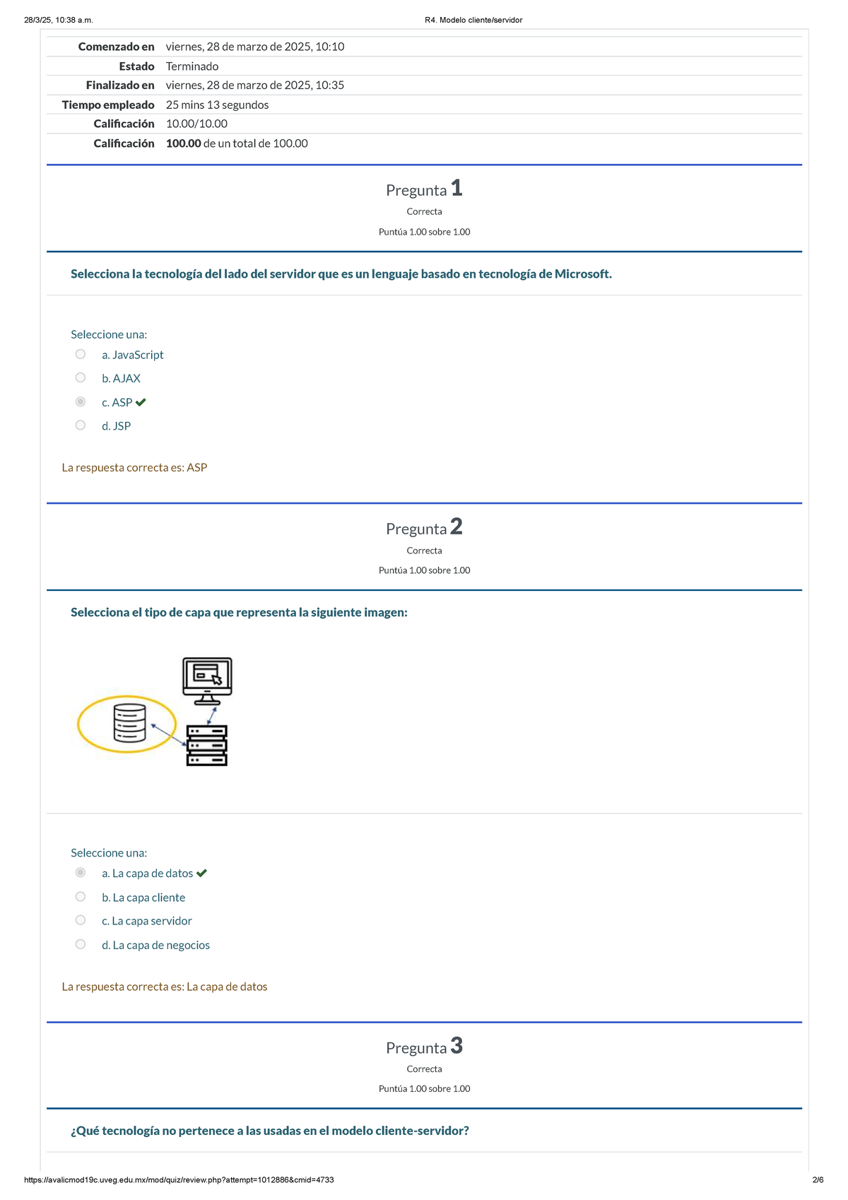R4. Modelo Cliente Servidor - Respuestas y Calificaciones 100% - Studocu