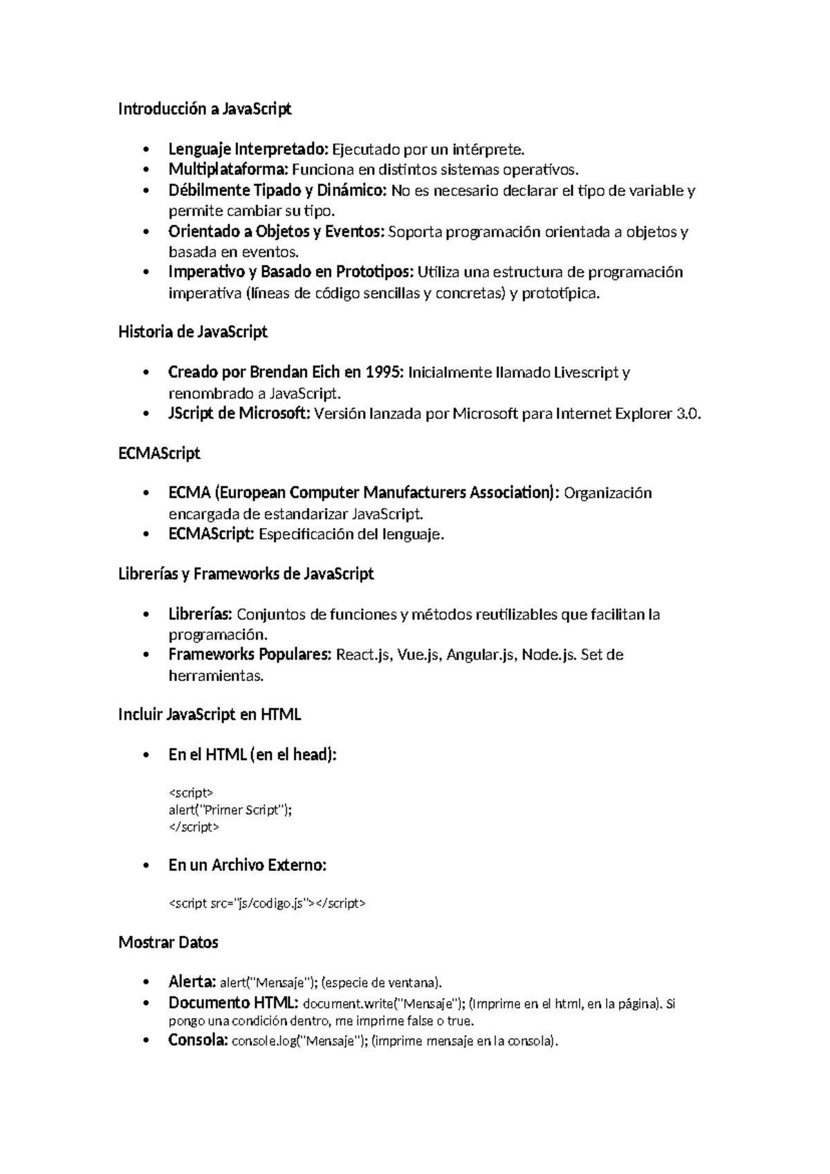 Resumen de JavaScript (JS) para Introducción a la Programación - Studocu