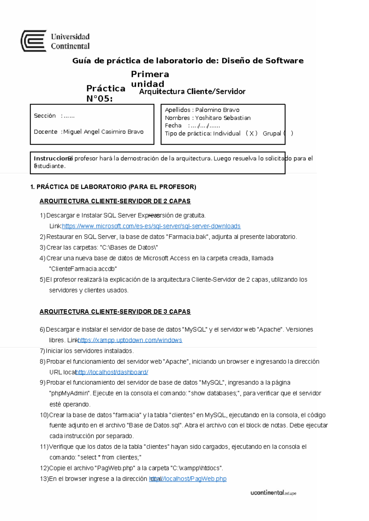 Lab 05: Práctica de Arquitectura Cliente-Servidor en Capas - Studocu