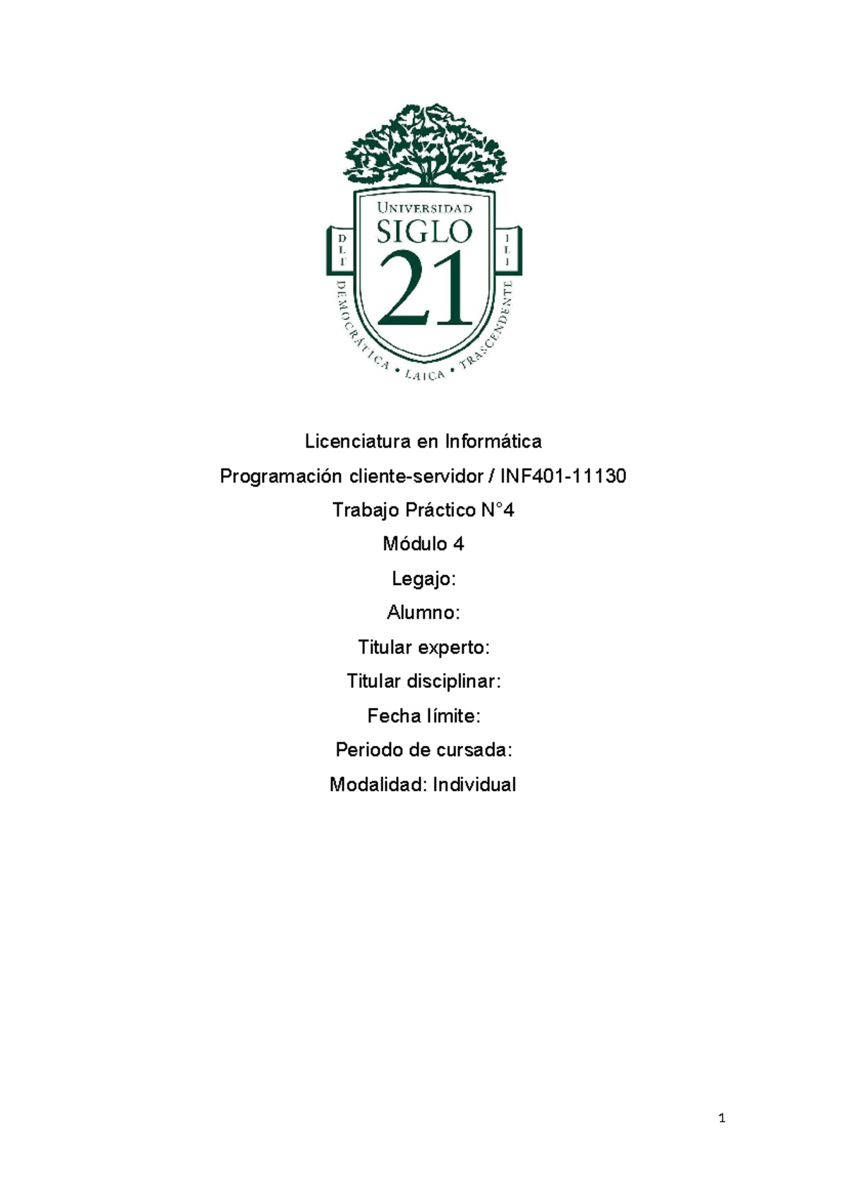 1er parcial - Programación Cliente Servidor - Siglo 21 - Studocu