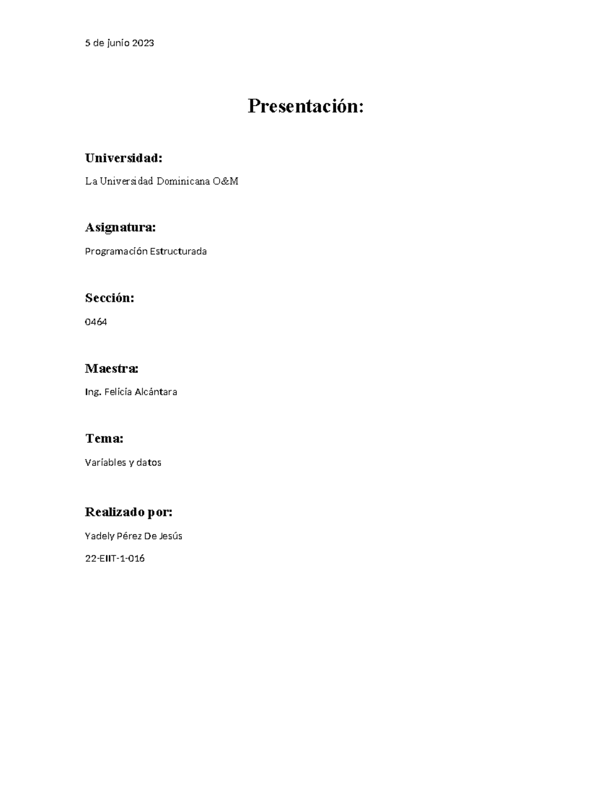 Apuntes sobre Variables y Datos en Programación Estructurada (0464 ...