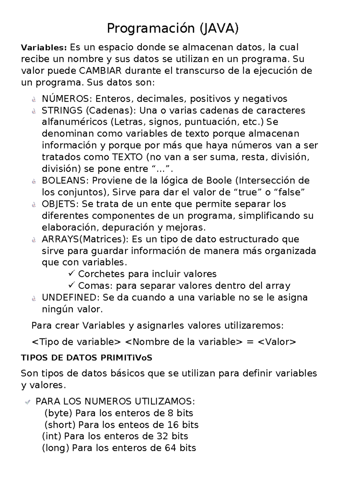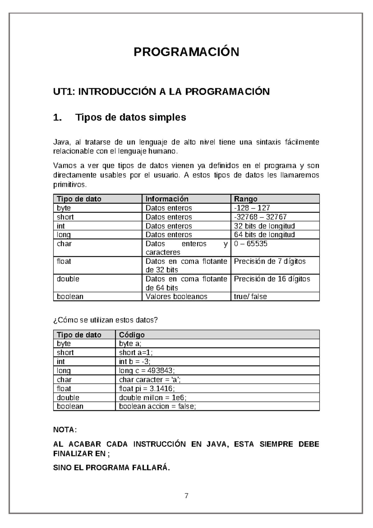 PROGRAMACIÓN UT1: TIPOS DE DATOS Y VARIABLES EN JAVA - Studocu