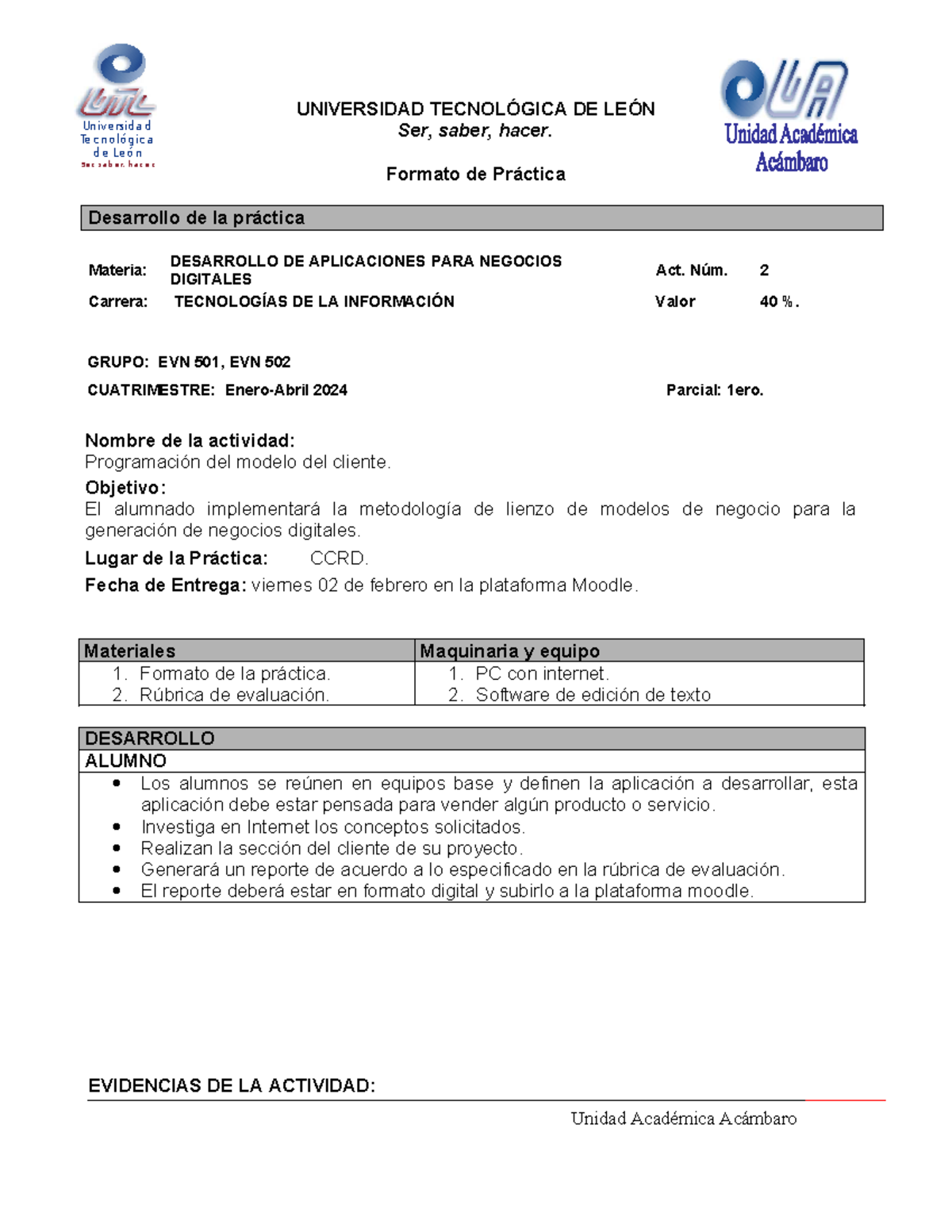Actividad 2: Programación del Modelo del Cliente - DESARROLLO DE ...