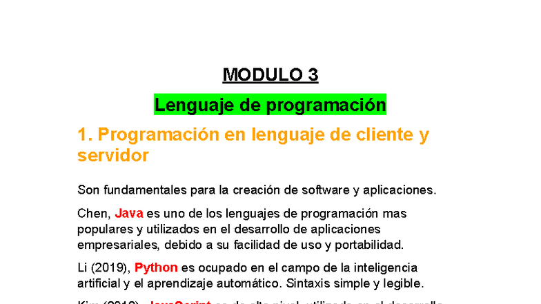 Resumen del Módulo 3: Lenguaje de Programación 1 - Cliente y Servidor ...