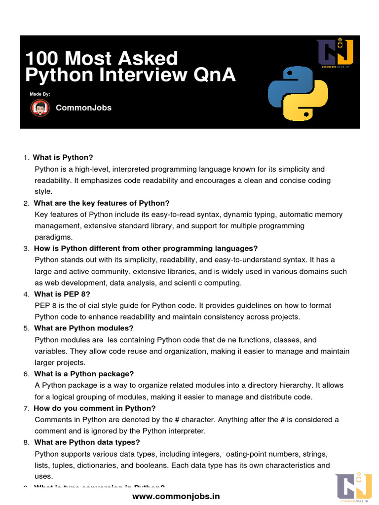 100 Most Asked Python Interview QnA PDF | PDF | Method (Computer ...