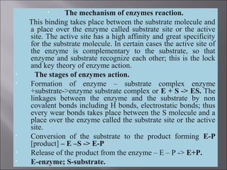 Mechanism of Enzyme Action.. | PPTX