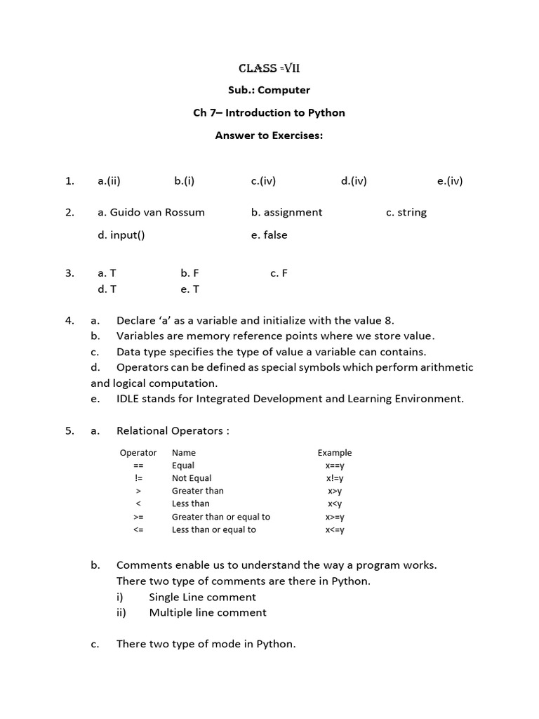 Introduction to Python | Lesson EXERCISES | Class - 7 Computer ...