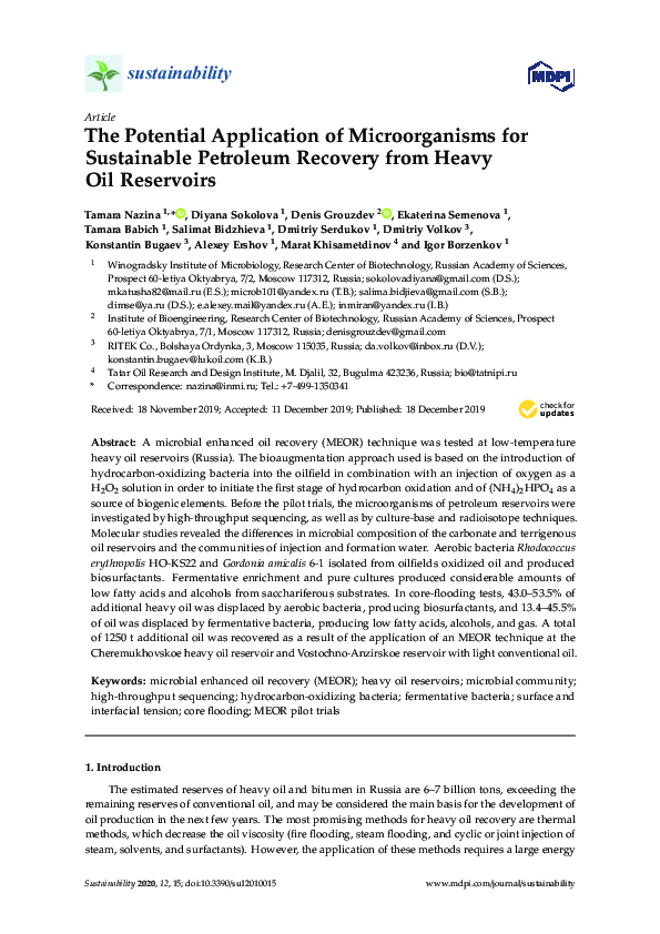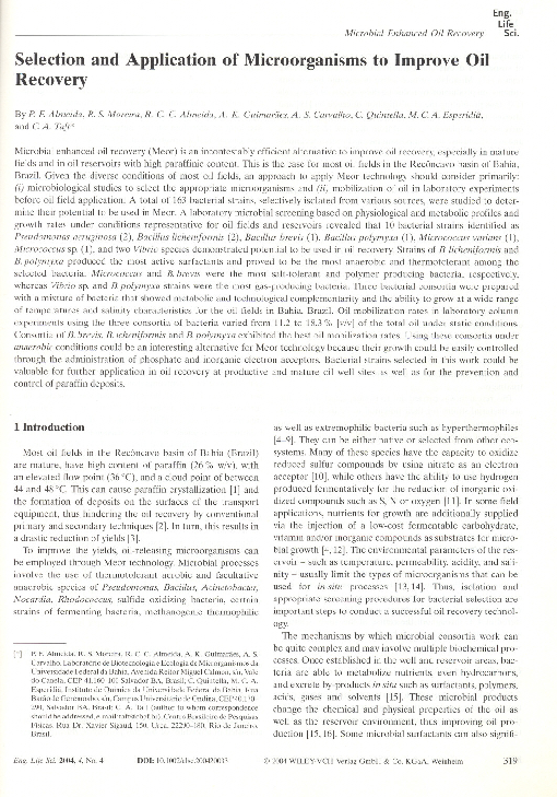 (PDF) Selection and Application of Microorganisms to Improve Oil Recovery