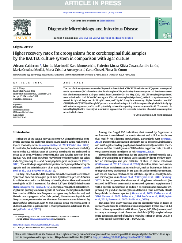 (PDF) Higher recovery rate of microorganisms from cerebrospinal fluid ...