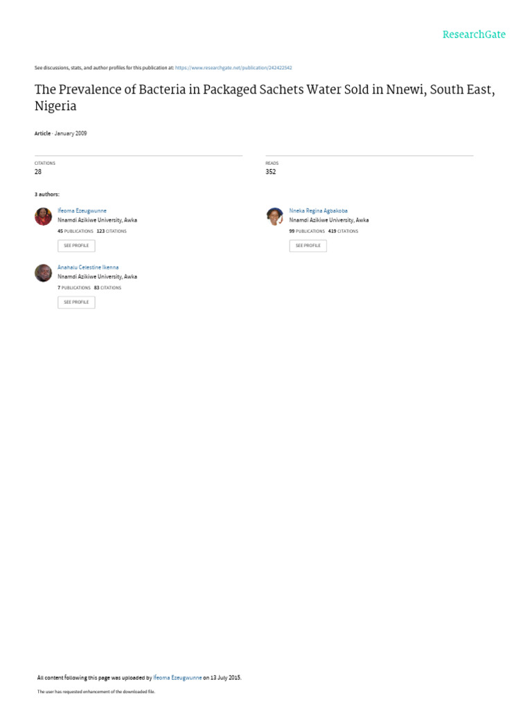 The Prevalence of Bacteria in Packaged Sachets Wat | PDF | Drinking ...