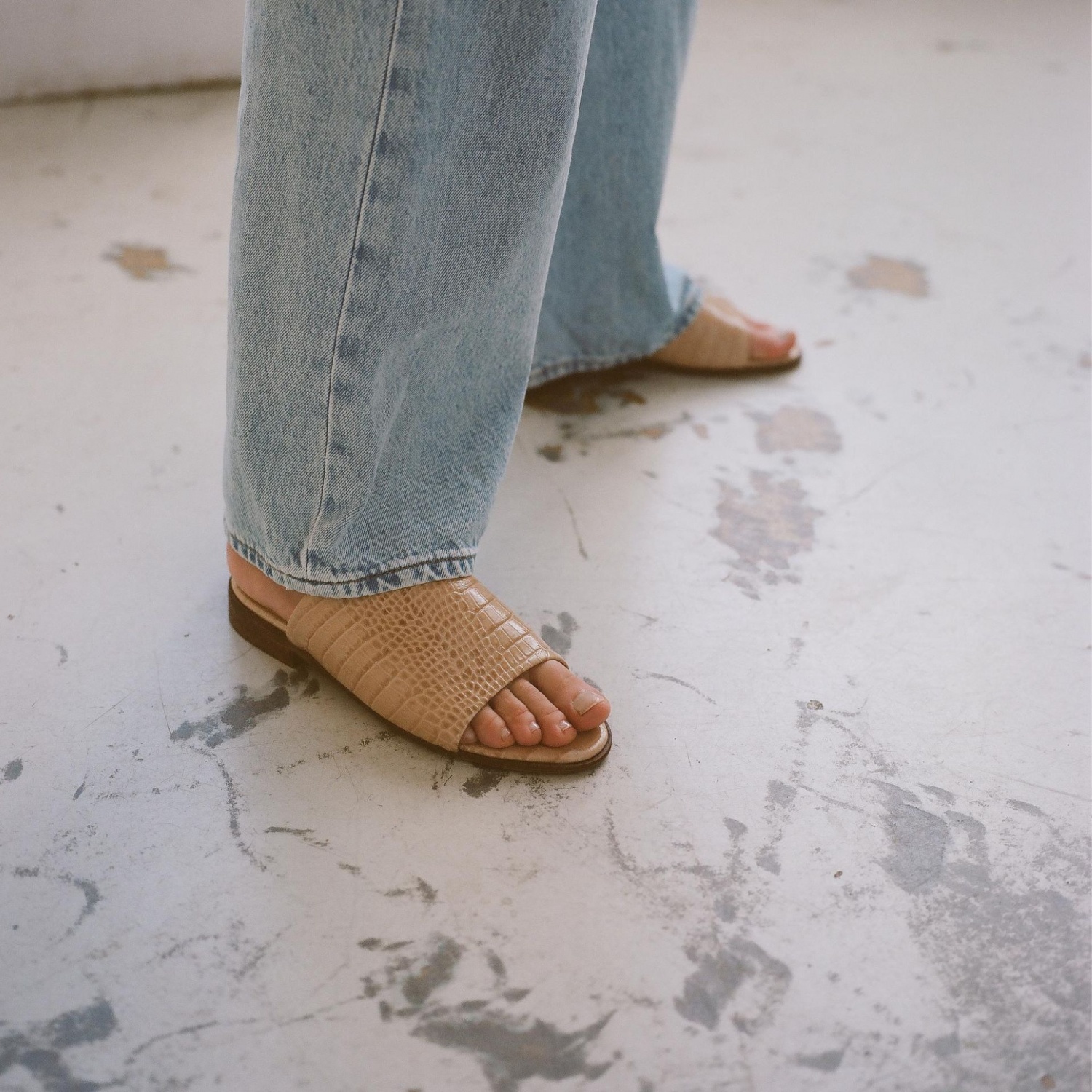 Park klapki, beżowy wzór krokodyla OUTLET| Balagan Studio