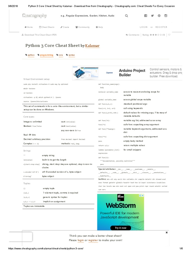 Python 3 Core Cheat Sheet by Kalamar - Download Free From Cheatography ...
