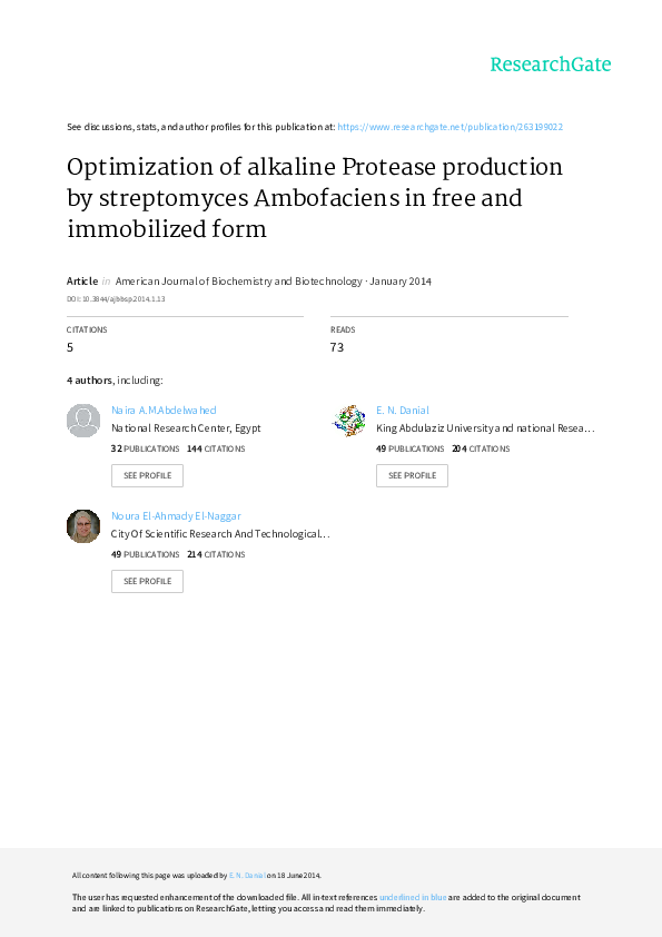 (PDF) Optimal production of alkaline protease from solvent-tolerant ...