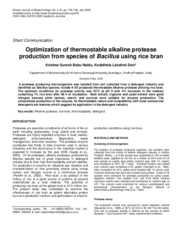 (PDF) Optimization of thermostable alkaline protease production from ...