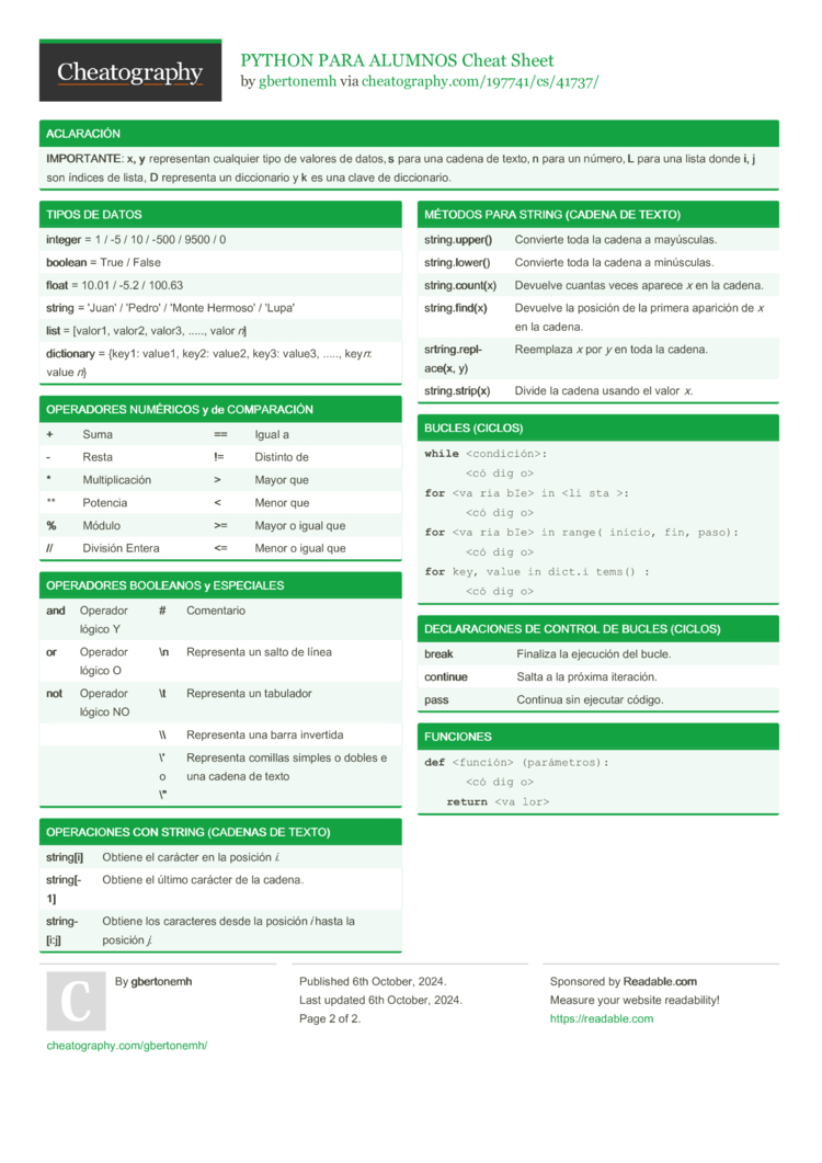 PYTHON PARA ALUMNOS Cheat Sheet by gbertonemh - Download free from ...