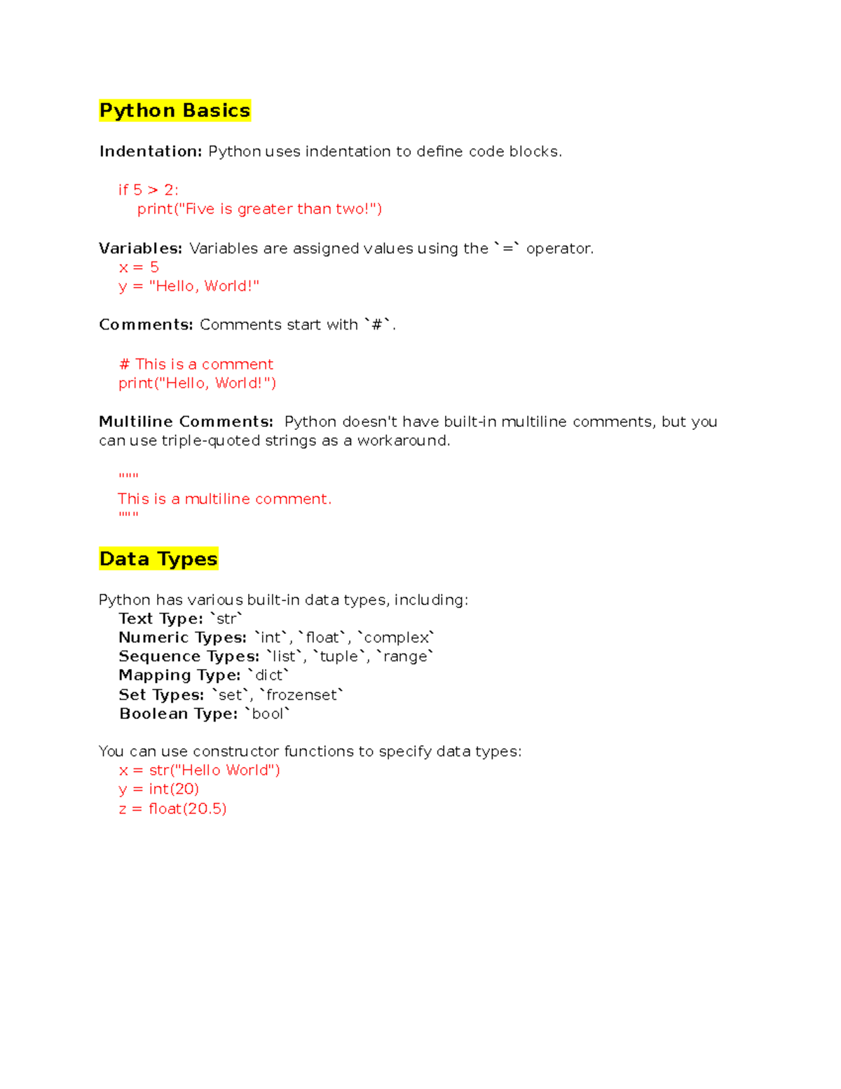 CS101: Python Basics - Syntax, Indentation, Variables & Comments - Studocu