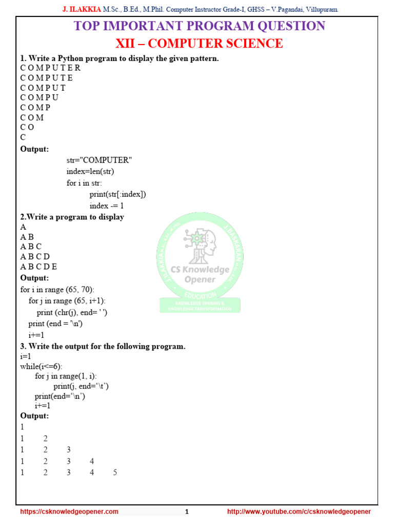 A Collection of Python Programming Exercises for Class 12 Computer ...