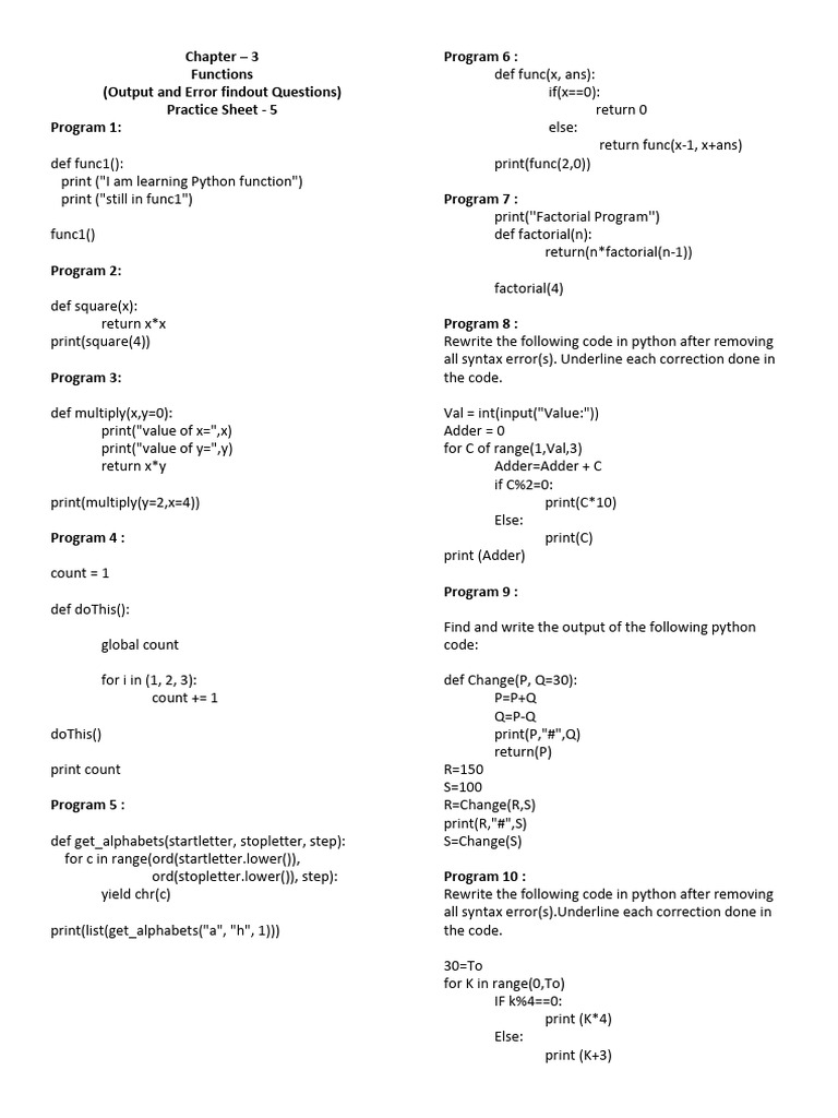 Chapter - 3 Functions Practice Sheet - 5 (Output Find Out Question ...