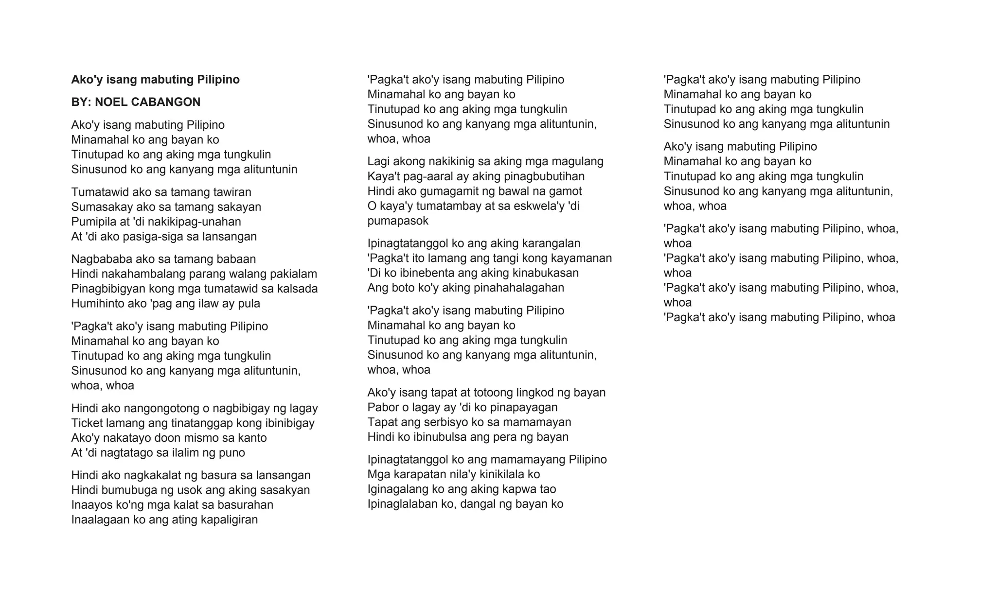 lyrics mabuting pilipino for peta in ppg | DOCX