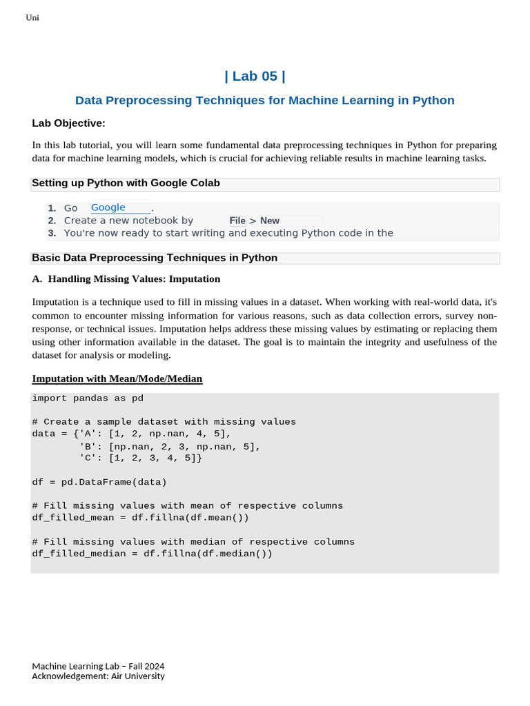 ML-Lab05-Data Preprocessing Techniques in Python | PDF | Machine ...