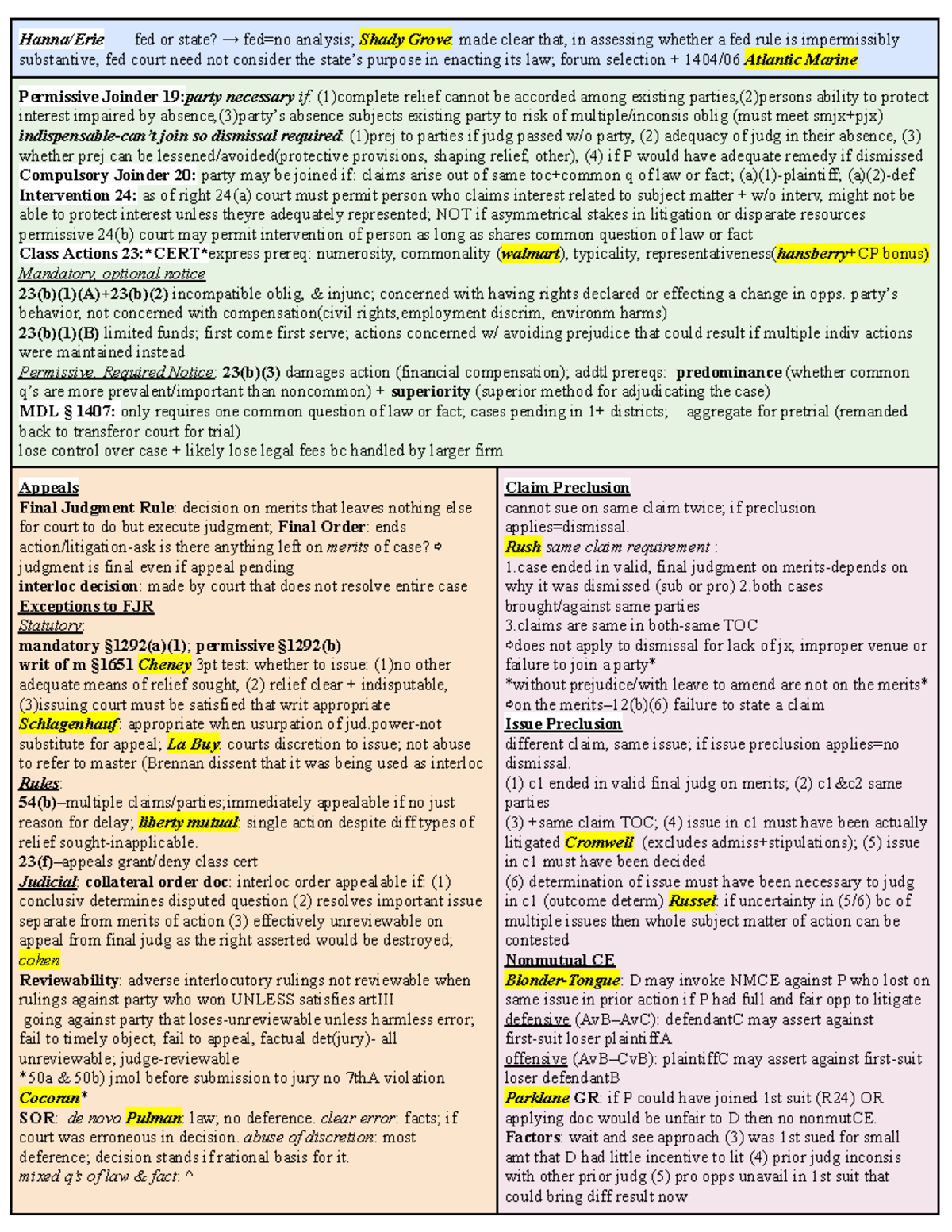 Civ Pro Cheat Sheet: Key Concepts & Rules for Exam Prep - Studocu