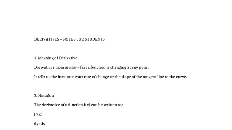 DERIVATIVES NOTES FOR STUDENTS: KEY CONCEPTS & RULES - Studocu