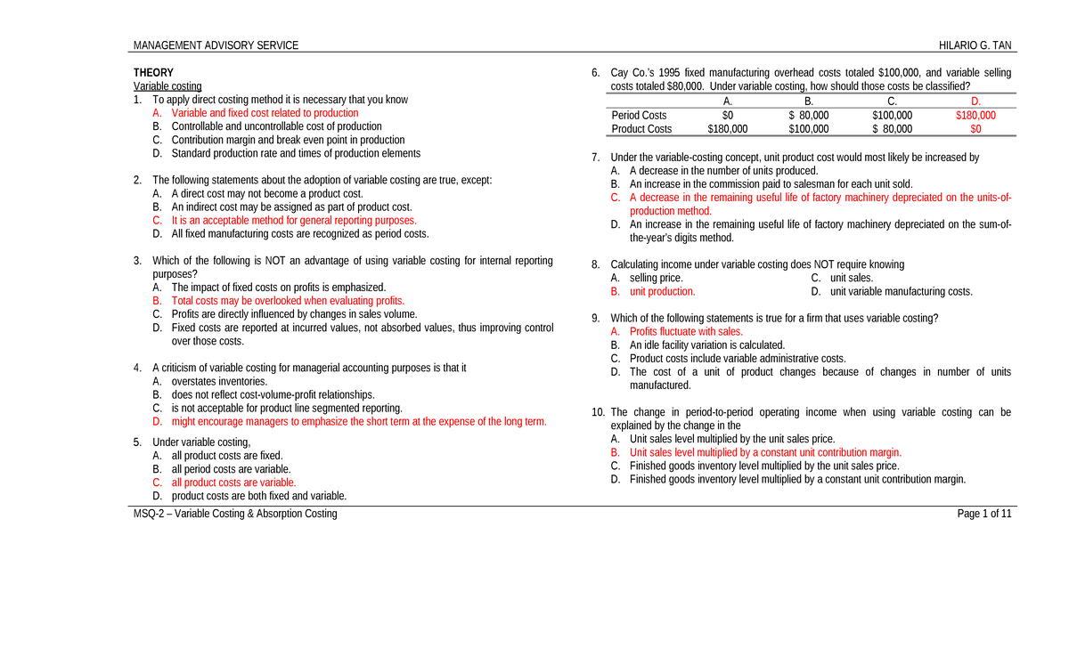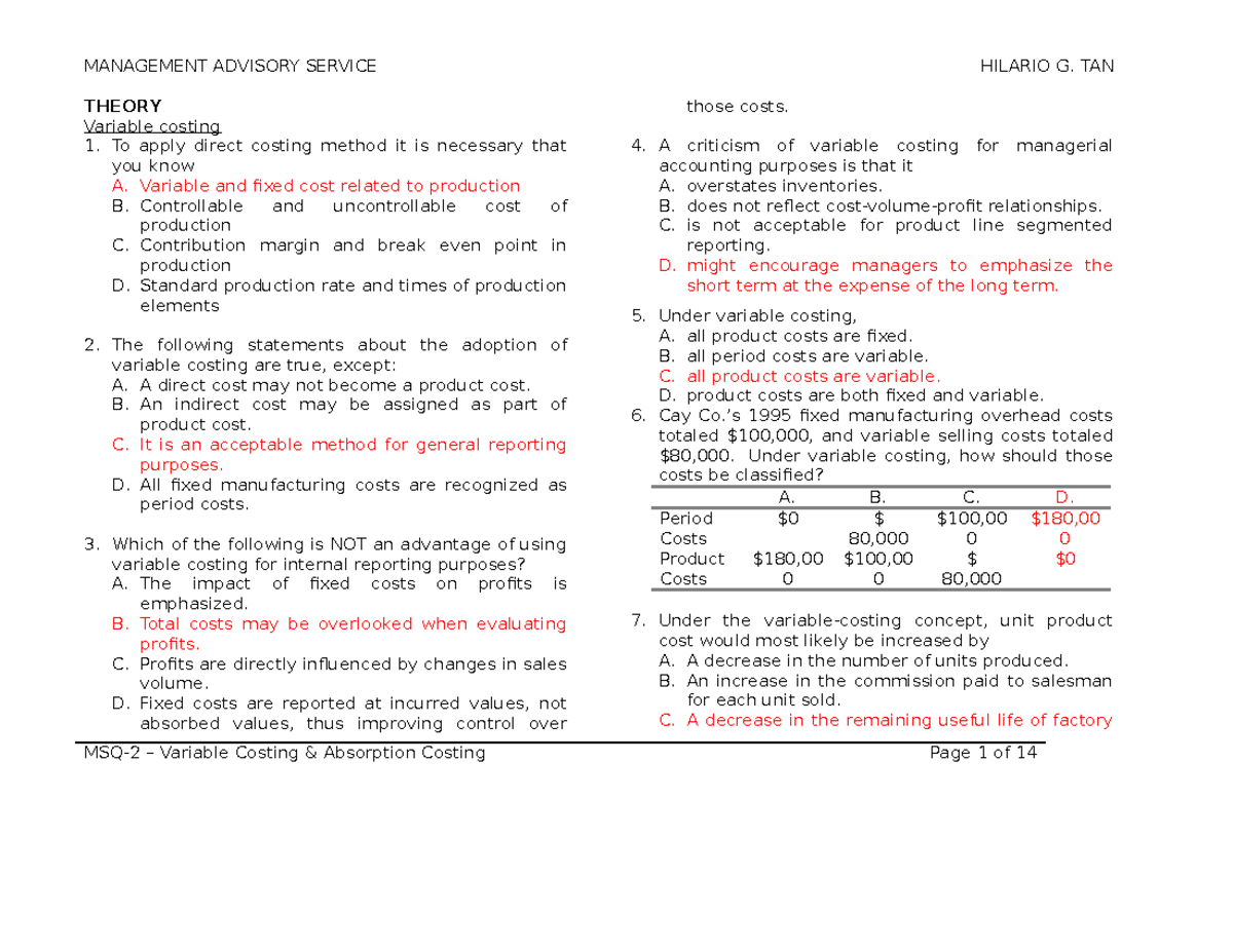 Z MSQ 02 Variable Costing: Key Concepts and Practical Applications ...