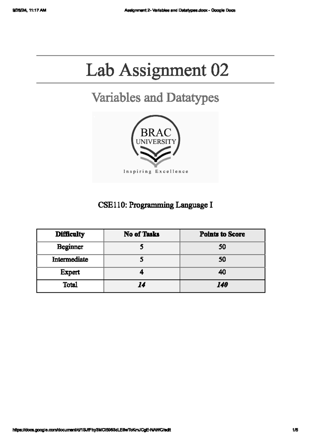 CSE110: Lab Assignment 02 - Variables and Datatypes - Studocu