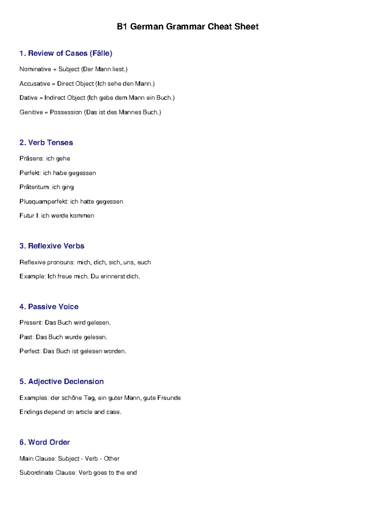 B1 German Grammar Cheat Sheet: Key Concepts & Rules - Studocu