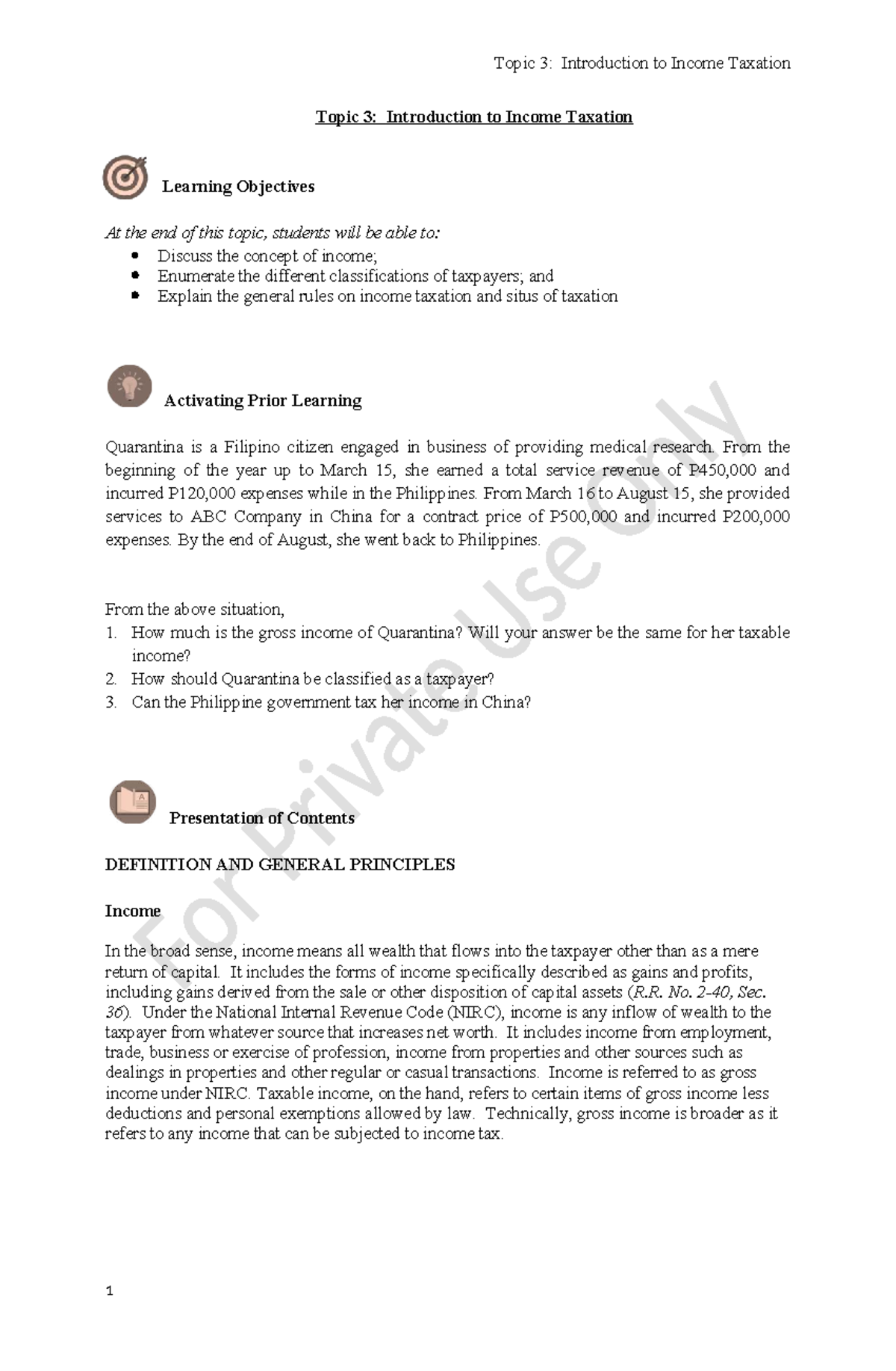 AE26 Topic 3: Intro to Income Taxation - Key Concepts & Rules - Studocu