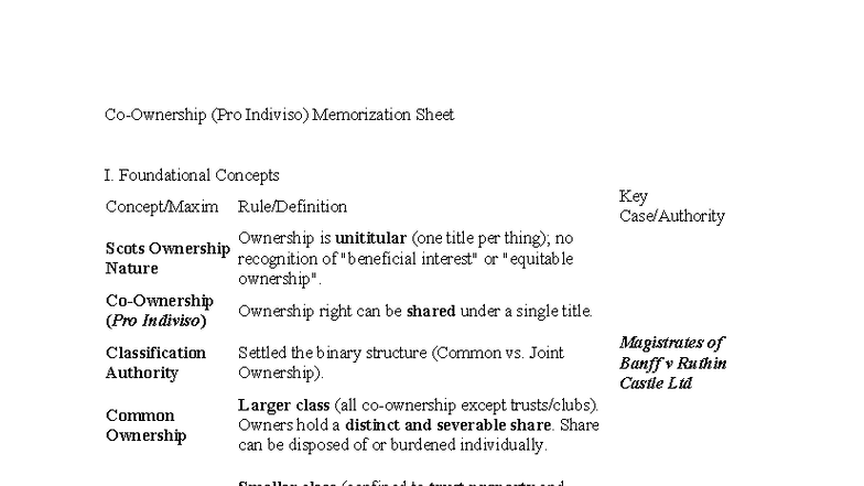 Co-Ownership Cheat Sheet (Pro Indiviso) - Key Concepts & Rules - Studocu