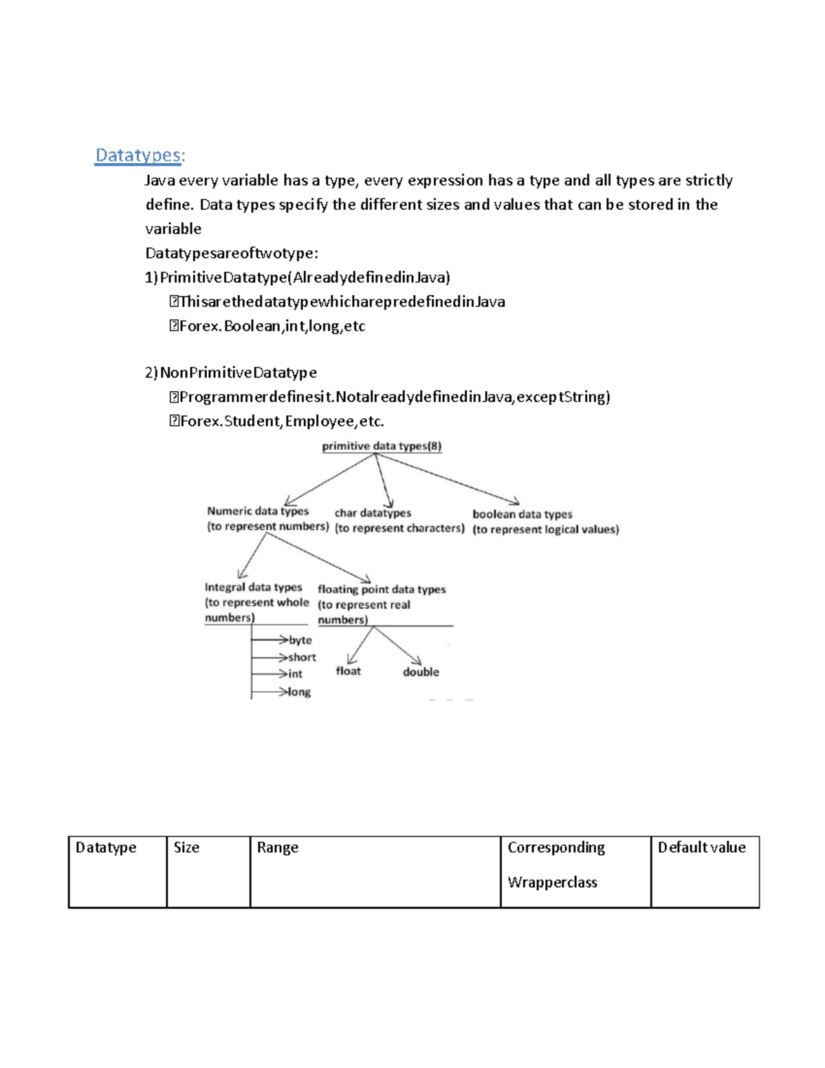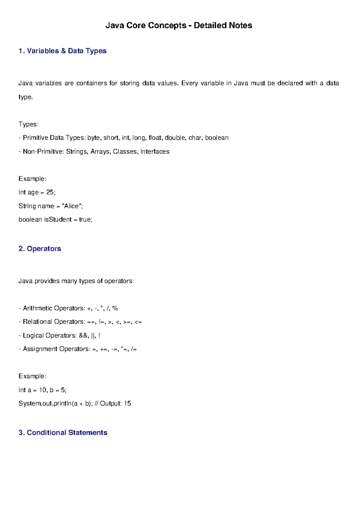 Java Core Concepts Detailed Notes: Variables, Operators, and Control ...