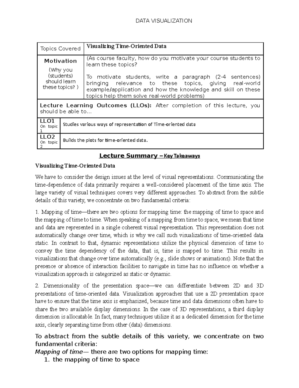 Visualization Techniques for Time-Oriented Data - .. LLO On topic 1 ...